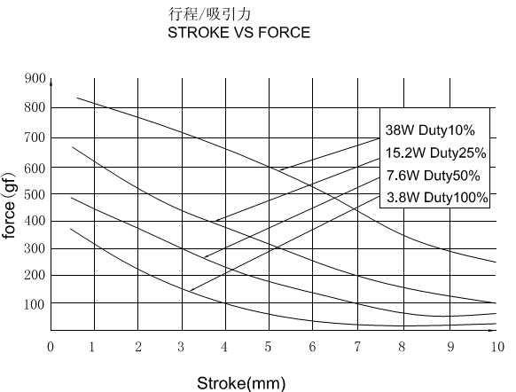 縱向:代表電磁鎖在對(duì)應(yīng)行程時(shí)的力量   單位為克(g