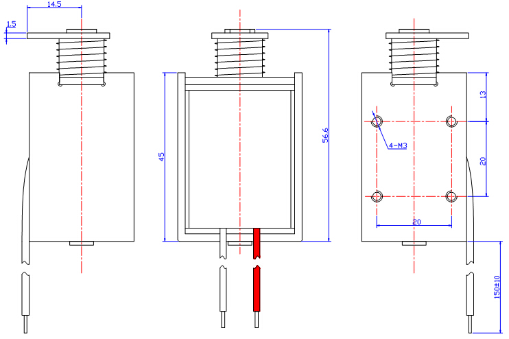 一、U1245框架電磁鐵尺寸圖:
