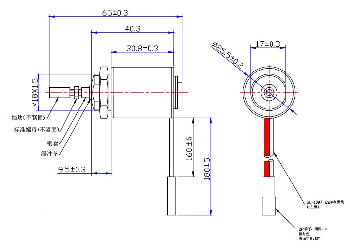 一、2530圓管電磁鐵尺寸圖如下:
